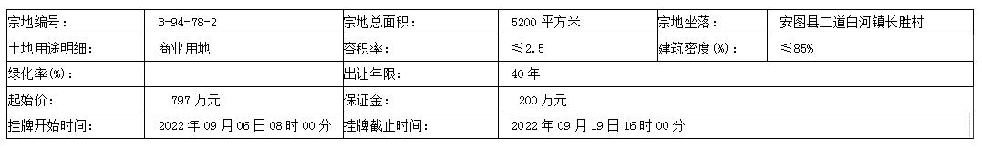 安图县自然资源局国有土地使用权挂牌出让预公告