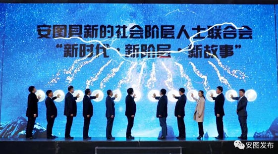 11月22日,安图县新的社会阶层人士联合会成立大会暨“新时代·新阶层·新故事”启动仪式在文化中心举行,开启了新的社会阶层人士统战工作新篇章。省委统战部八处处长赵庆山,州委统战部常务副部长杨光华,县委副书记朴君峰,州司法局副局长滕奎宏,州残联副理事长曾晓光,县委常委、宣传部部长崔文德,县委常委、统战部部长李云,县人大常委会副主任于英志,县政府副县长董振国到会祝贺。