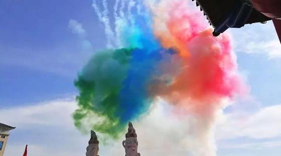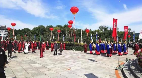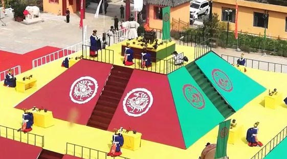 彩旗猎猎、礼乐悠扬,庄严恢弘的千年“国礼”开启,众多活动参与者身着传统服装,击鼓、敬拜,通过敬山表达对大自然的敬畏和对传统文化的敬仰。