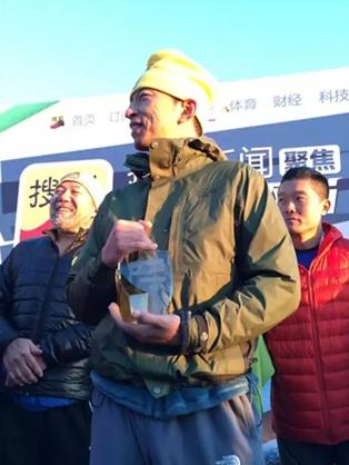 登上天池,众星一览大美长白山冬雪极致之美,纷纷赞叹眼前的美景,在海拔超过2400米的天池观景台合影留念。随后,张朝阳为连续三季参加跑步活动的嘉宾颁发奖杯,张宁江获得“追风型男奖”、田家达获得“破风型男奖”,王勇峰获得“捕风汉子奖”。活动的主人张朝阳则获得“领跑风尚奖”。